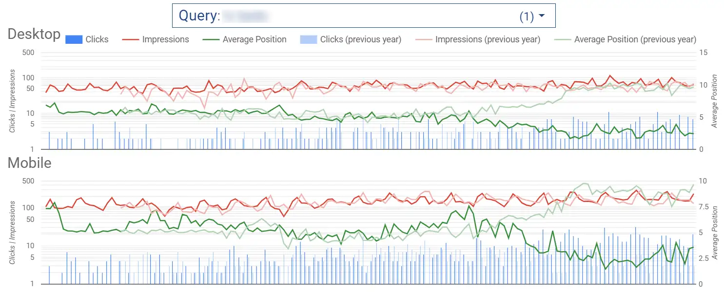When checking the rankings of the individual queries, those which landing pages were targeted in the article placement campaigns showed important gains like below: